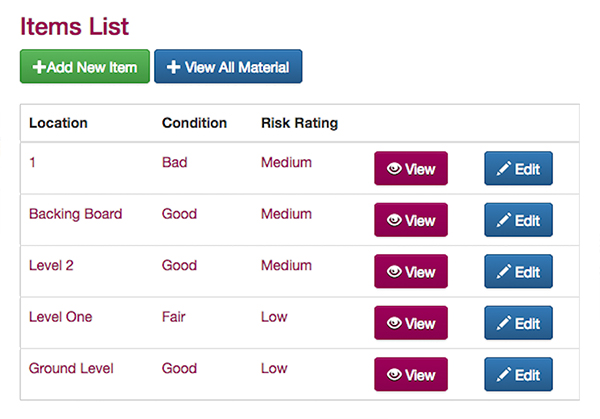 This web app allows an inspector to tour a facility and record assets of note, link them to a photo taken on their device and its GPS location. The asset can then be linked to maintenance or safety schedules, and have actions tracked for compliance. Regular reports are created and converted into board room ready PDFs.